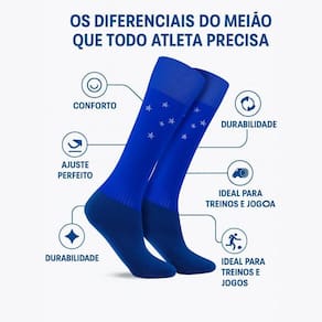 Meião futebol salão campo society cruzeiro infantil juvenil Tamanho: 34 ao 37 Descrição A rikam é uma fábrica de meias com distribuição nacional com mais de 50 anos de atuação no mercado. Produz meias para todos os segmentos e é especializada nas linhas para esportes como corrida, bike, academia, meias de compressão meias com fios especiais e tecnologia comprovada. A rikam adquiriu a oficial para produzir meiões infantis e juvenis dos principais clubes de futebol brasileiro. Desta forma você poderá ter o meião do time do seu coração de forma oficial com produto de alta qualidade Elaborado especialmente para os jovens torcedores que valorizam o conforto e a praticidade durante as partidas. Confeccionado com materiais de alta qualidade, este acessório apresenta um design nas cores do seu time preferido destacando o emblemático símbolo do clube. Conforto e desempenho: fabricado com tecidos respiráveis e tecnologia de absorção de umidade, este meião mantém seus pés secos e confortáveis durante todo o jogo, permitindo que você se concentre no seu desempenho em campo. Composição: 75% poliamida 16% algodão 05% poliéster 04% elastodieno Indicação de tamanhos: Infantil: tam 29 ao 33 Juvenil: tam 34 ao 37