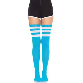Leg Avenue Meias femininas atléticas com nervuras na altura da coxa com três listras, Azul neon, Tamanho único