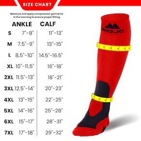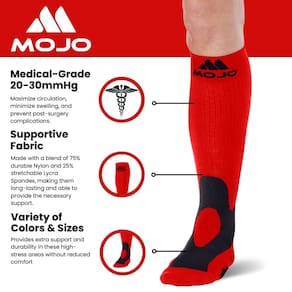 Meias de compressão Mojo A601 para mulheres e homens 20-30mmHg vermelhas