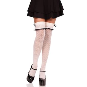 Leg Avenue Meias femininas de crochê com punho acima do joelho, Branco