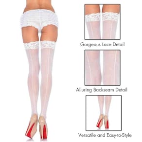 Meias femininas de renda transparente Leg Avenue com costura traseira, brancas
