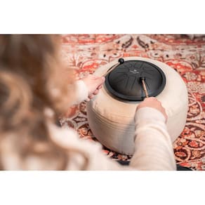 Com 7" de diâmetro, esses tambores podem ser tocados por qualquer pessoa, em qualquer lugar, independentemente do nível de habilidade. Sua escala pré-definida garante que não existam notas erradas, e o som produzido é etéreo e relaxante semelhante ao de um steel pan suave.