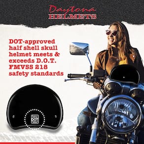 IMPORTANTE: Se for um produto elétrico, ele pode ser compatível com uma tomada de 110 volts. Se utilizado fora dos Estados Unidos, pode ser necessário um conversor de voltagem para garantir a operação adequada. Verifique se o produto que você está comprando é elétrico antes de considerar essas informações. Boné de caveira com meio capacete para motocicleta Daytona HELMETS - preto de alto brilho 100% aprovado pelo DOT