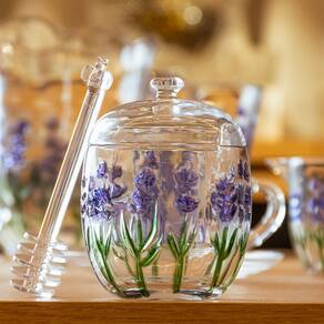 A Meleira com Pegador da Lyor Lavanda Hand Painting em Cristal é a opção perfeita para quem busca aliar beleza e praticidade. Com um design delicado e pintada à mão, esta peça exclusiva vai encantar a sua mesa e proporcionar um toque de sofisticação em cada momento.