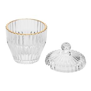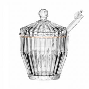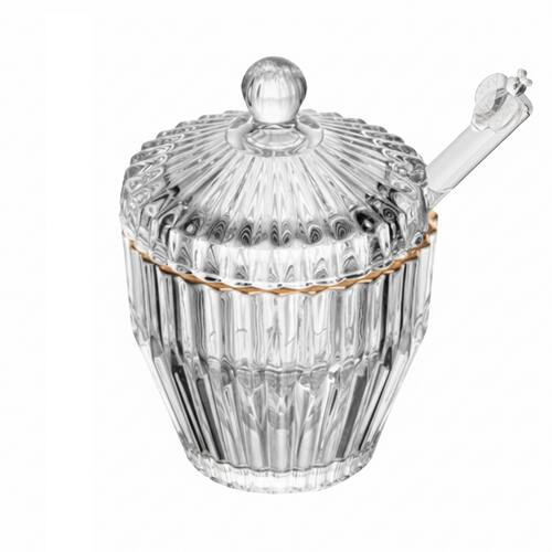 A Meleira com Pegador e Tampa Imperatriz com Fio de Ouro 11x8cm de Cristal Ecológico Canelado da Wolff é uma verdadeira joia para sua mesa. Seu design clássico, combinado com o detalhe sofisticado do fio de ouro, proporciona uma experiência elegante ao servir mel ou outros acompanhamentos.