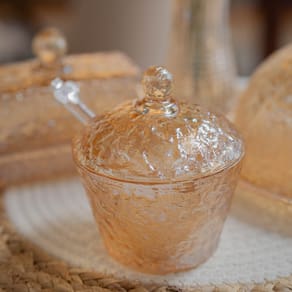 Meleira Em Cristal Martelado Petra 230ml Lyor Transparente - Características Gerais do Produto: • Dimensões: Ø 10x12,5cm • Capacidade: 230ml • Material Principal: Cristal • Linha: Petra • Cor: Transparente • Informações Adicionais: Lavar com detergente neutro e esponja macia; Secar imediatamente; Não utilizar nenhum tipo de produto químico; Não pode ir a lava-louças e ao micro-ondas
