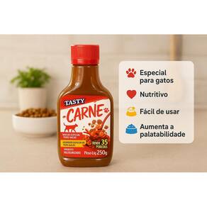 Melhor Molho Para Ração De Gatos Tasty Carne 250g Nutritivo Molho Tasty Carne Para Gatos 250g O Molho Tasty Carne foi desenvolvido especialmente para gatos, tornando a ração mais atrativa e saborosa, além de contribuir para uma melhor aceitação alimentar. Benefícios: