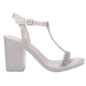 A sandália Melissa referência 35772 é ideal para mulheres adultas. Confeccionada em PVC Melflex, possui palmilha em EVA e solado em PVC. O salto grosso de 10,5 cm proporciona elegância e conforto. Acabamento vulcanizado para maior durabilidade. Perfeita para ocasiões especiais.