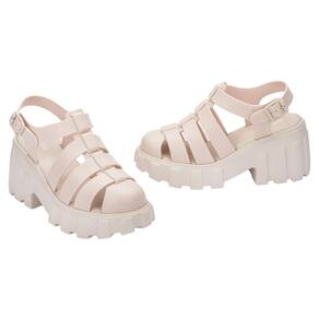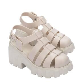 Conheça a Melissa Megan, a diva das ruas e das passarelas. A estrutura em material Melflex, com fechamento em fivela no tornozelo. A palmilha em EVA é muito macia, proporcionando conforto absoluto e o seu solado em PVC com salto grosso de oito centímetros e meio, garante estabilidade.