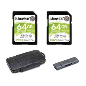 La tarjeta SD Kingston Canvas Select Plus de 64GB está diseñada con un rendimiento excepcional, velocidad y durabilidad para trabajos intensivos como transferir y desarrollar fotos de alta resolución o capturar y editar video Full HD. Puede alcanzar velocidades Clase 10 UHS-I de hasta 100MB/s para un almacenamiento fácil y transferencias rápidas, junto con una interfaz UHS-I avanzada que permite grabar video cinematográfico Full HD y 4K Ultra HD. La tarjeta SD Canvas Select Plus está construida para rendir en los entornos y condiciones más difíciles, por lo que puedes llevarla a cualquier lugar sabiendo que tus archivos, fotos y videos están protegidos. Incluye en el paquete: 2 tarjetas de memoria SDHC Kingston 64GB Canvas Select Plus, estuche resistente para almacenamiento de memoria, lector de tarjetas SD dual OTG de aluminio 2 en 1.