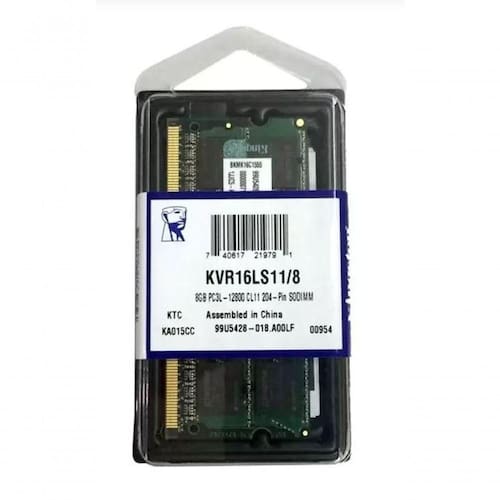 Memória Notebook 8gb Ddr3 1600mhz Kingston Kvr16ls11/8 Low Voltage 1.35v Memória SODIMM 8GB DDR3L 1600MHz Kingston para Notebook KVR16LS11/8 Low Voltage 1.35V PC3L-12800 Melhore o ;desempenho ;do seu notebook com a ;Memória Kingston SODIMM 8GB DDR3L, ideal para multitarefas e velocidade.
