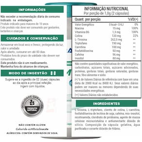 - com: niacina, vitamina b6, colina, l-tirosina, triptofano, carnitina, fosfatidilserina, cafeína e inositol;