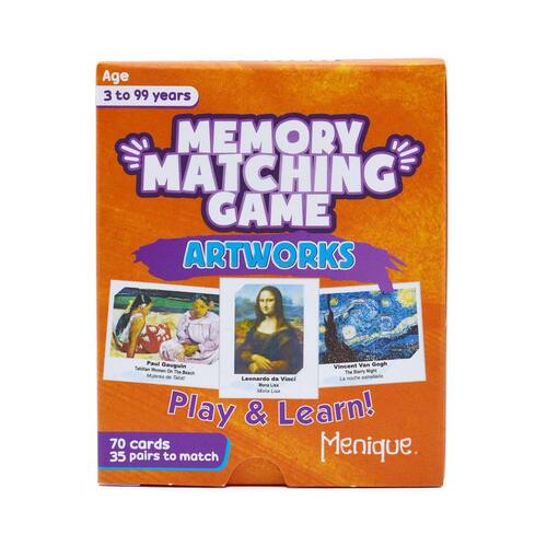 O Artworks Memory Matching Game vem com 70 cartas e 35 pares. Cartões de papelão laminados de alta qualidade, duráveis e ecológicos. Tamanho: 3,2 x 2,6 polegadas (8 x 6,5 cm)