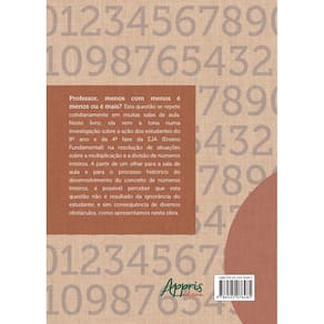 Professor, menos com menos é menos ou é mais? Esta questão se repete cotidianamente em muitas salas de aula do Brasil. Neste livro, ela vem à tona numa investigação sobre as potencialidades e dificuldades de estudantes do 8º ano e da 4ª fase da EJA (Ensino Fundamental) na resolução de situações sobre a multiplicação e a divisão de números inteiros. A partir de um olhar para a sala de aula e para o processo histórico do desenvolvimento do conceito de números inteiros é possível perceber que esta questão não é resultado da ignorância do estudante, mas consequência de diversos obstáculos.