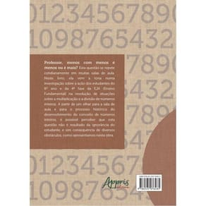 Professor, menos com menos é menos ou é mais? Esta questão se repete cotidianamente em muitas salas de aula do Brasil. Neste livro, ela vem à tona numa investigação sobre as potencialidades e dificuldades de estudantes do 8º ano e da 4ª fase da EJA (Ensino Fundamental) na resolução de situações sobre a multiplicação e a divisão de números inteiros. A partir de um olhar para a sala de aula e para o processo histórico do desenvolvimento do conceito de números inteiros é possível perceber que esta questão não é resultado da ignorância do estudante, mas consequência de diversos obstáculos.