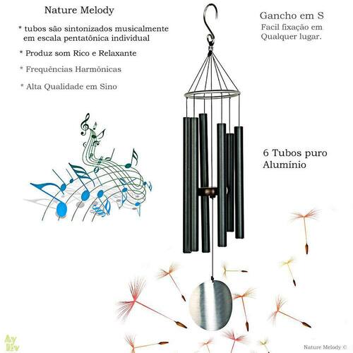 Mensageiro dos Ventos Sino Nature Melody AT42BK 116 Cm Preto Embalagem: 1 Sino Mensageiro dos Ventos Nature 's Melody Mod: T42BK 116 Cm e 16 Cm Diametro Tubos com 3 Cm Diametro. É muito importe que veja e ouça o vídeo que esta na última das sequência das fotos, deve ser acessado por um Computador ou Notebook. O que é Escala Pentatônica A escala pentatônica tem notas que, quando tocadas, sempre vão gerar uma melodia que é agradável. O produto final, é um Sino Mensageiro dos Ventos de Alta Qualidade Seus tubos possuem um diâmetro de 3 Cm, Belos e Encorpados Tubos em Preto. A embalagem tem alto impacto, assim como o produto. Eu me apaixonei, você também pode se apaixonar por esse maravilhoso Sino Nature sMelody T42BK. A Nature Melody é o melhor dos sinos Mensageiro dos Ventos afinados e artesanais. Projetado e construido com os materiais da mais alta qualidade. produz um som mágico capaz de agradar até os mais exigentes ouvintes e são muito elegantes. Usa tubos de alumínio anodizado duráveis que previnem a oxidação. Os Sinos dos ventos vão encantar seus amigos e famíliares. Encante se, com esse som maravilhoso que este Sino Mensageriro dos Ventos pode trazer para seu ambiente. Pode ser também, um maravilhoso presente, quem não se encantaria com esse Sino Mensageiros dos Ventos. O Numero 1 em Sinos. Informações do Produto: Marca: Nature Melody Modelo: AT42BK COR: Preto Tamanho: 116 Cm Diametro Total: 16 Cm Diametro Tubo 3 Cm Material: Alumínio Marca: Nature 'S Melody