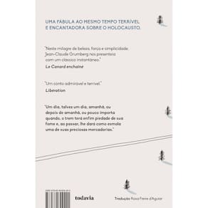 Um casal de lenhadores observa, diariamente, comboios atulhados de gente passarem diante de seus olhos. Ingênua, a mulher sempre espera por um aceno ou mesmo um presente. Para onde vão essas pessoas?, ela se pergunta. Até que alguém joga o presente que ela jamais pensou receber: um bebê. Neste breve relato, o autor, à maneira das fábulas, fala de um dos capítulos mais tenebrosos da história da humanidade: a deportação de milhões de judeus para os campos de concentração nazistas.