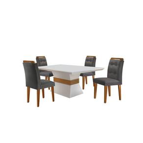Informações Complementares: Conjunto produzido em material 100% MDF, acabamento em pintura UV, e cadeiras estofadas com espumas e tecidos de alta qualidade.