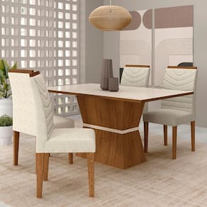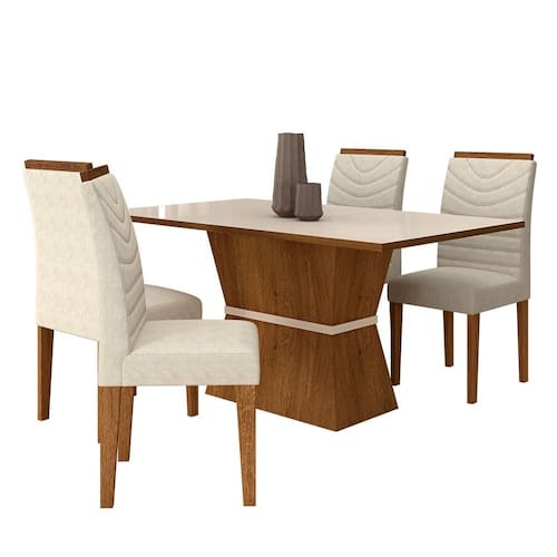 Mesa 4 Cadeiras 1,36 Odessa Freijó/off Premium/suede Bege - M.a