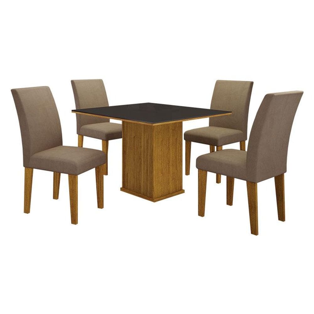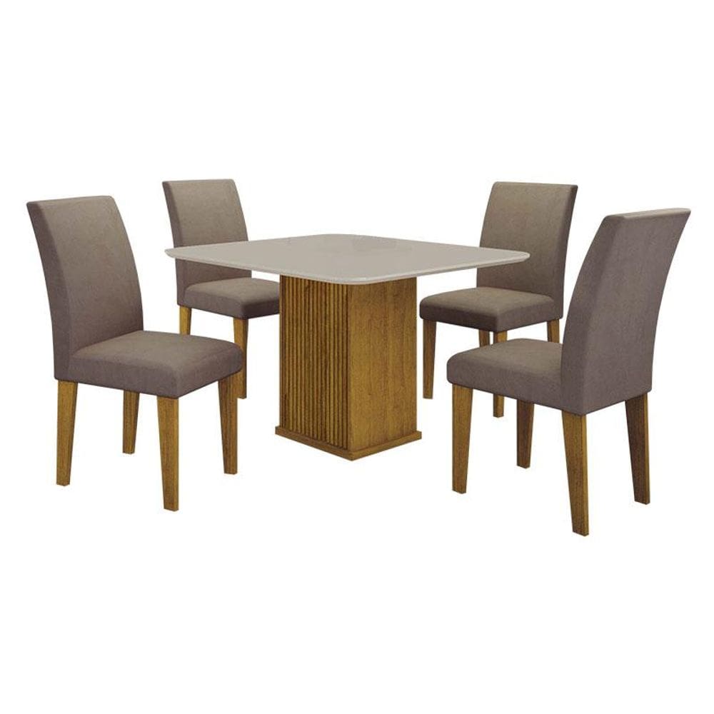 Mesa De Jantar Napoli 90x90 Reto Freijó Decor Com 4 Cadeiras Mdf Freijó Joli Camurça - Leifer Móveis