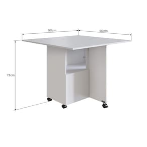 ( Mesa avulsa, não acompanha cadeiras. ) Ideal para ambientes com pouco espaço, esta linha apresenta produtos compactos e versáteis, com design inovador proporcionando praticidade e conforto. Pensando em custo benefício, mas sem perder qualidade, estes móveis são produzidos 100% em MDP. Peso Máximo por Prateleira: 5.0000 Tipo de Porta: Bater Acabamento: Finish Foil Acabamento da Base: Finish Foil Acabamento da Porta: Finish Foil Acabamento da Prateleira: Finish Foil Acabamento do Tampo: Finish Foil Ambiente Principal: Cozinha codigo_ean: 7909903220108 Complexidade da Montagem: Média: pode ser montado por mais de uma pessoa e/ou necessite de maior conhecimento para montagem Cor: Branco Cor do Produto: Branco Dobrável: Sim Escala de Brilho: Fosco Escala de Brilho da Porta: Fosco Escala de Brilho da Prateleira: Fosco Extensível: Não Informações Complementares: Mesa avulsa, não acompanha cadeiras. Itens Inclusos: 1 Mesa, Kit Ferragens e Manual de Montagem Largura Extendida: 90 cm Largura Quando Extendida: 90.0000 Linha ou Coleção: Mesa Dobrável Manual de Montagem e Instalação: https://product-hub-prd.madeiramadeira.com.br/819285/documents/a4335869-b38d-4d74-adb6-d7d7fe3d3d608655567b50manualdemontagem.pdf Material da Base: MDP Material da Porta: MDP Material da Prateleira: MDP Material do Tampo: MDP Material Principal: MDP Medida do Tampo (L x C x E): 90x90x1,5cm Necessita Montagem: Sim Origem do Produto: Nacional Peso: 25,56 kg Possui Base: Não Possui Portas: Sim Possui prateleira: Sim Possui Rodízio: Sim Possui Suporte Giratório: Não Recomendações de Uso, Manutenção e Limpeza: Para a limpeza do móvel utilizar uma flanela seca. Sistema de Montagem: Parafusos, cavilhas e minifix Suporta Até (kg): 20 kg Tipo de Dobradiça/Corrediça da Porta: Metálica Tipo de Puxador da Porta: Não Possui - Abertura por Fecho Toque Ean: 7909903220108