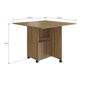 Ideal para ambientes com pouco espaço, esta linha apresenta produtos compactos e versáteis, com design inovador proporcionando praticidade e conforto. Pensando em custo benefício, mas sem perder qualidade, estes móveis são produzidos 100% em MDP. Acabamento: Finish Foil Acabamento da Base: Finish Foil Acabamento da Porta: Finish Foil Acabamento da Prateleira: Finish Foil Acabamento do Tampo: Finish Foil Ambiente Principal: Cozinha Complexidade da Montagem: Média: pode ser montado por mais de uma pessoa e/ou necessite de maior conhecimento para montagem Cor: Marrom Cor do Produto: Marrom Design da Base: Dobrável: Sim Escala de Brilho: Fosco Escala de Brilho da Porta: Fosco Escala de Brilho da Prateleira: Fosco Espessura do Tampo: mm Extensível: Sim Informações Complementares: Itens Inclusos: 1 Mesa, Kit Ferragens e Manual de Montagem Largura Extendida: 90 Largura Quando Extendida: 90 Linha ou Coleção: Mesa Dobrável Manual de Especificação Técnica: Manual de Montagem e Instalação: https://cdn2.madeiramadeira.com.br/atributo/nova-mobile/1135474-7898463865570-7-b50-manual-de-montagem.pdf Material da Base: MDP Material da Porta: MDP Material da Prateleira: MDP Material do Puxador da Porta: Material do Tampo: MDP Medida da Base (A x L x P): Medida do Suporte Giratório (L x C x E): Medida do Tampo (L x C x E): 90x90x1,5cm Necessita Montagem: Sim Origem do Produto: Nacional Peso: 25.56 Peso Máximo por Prateleira: 5 Possui Base: Não Possui Portas: 02 Possui prateleira: 01 Possui Rodízio: Sim Possui Suporte Giratório: Não Recomendações de Uso, Manutenção e Limpeza: Para a limpeza do móvel utilizar uma flanela seca. Sistema de Montagem: Parafusos, cavilhas e minifix Suporta Até (kg): 20 Tipo de Dobradiça/Corrediça da Porta: Metálica Tipo de Madeira Maciça: Tipo de Madeira Maciça da Base: Tipo de Madeira Maciça da Porta: Tipo de Madeira Maciça da Prateleira: Tipo de Madeira Maciça do Puxador da Porta: Tipo de Madeira Maciça do Tampo: Tipo de Porta: Bater Tipo de Puxador da Porta: Não Possui - Abertura por Fecho Toque