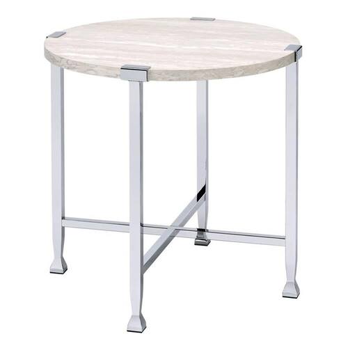 Mesa redonda de madeira Acme Brecon em carvalho branco e cromo