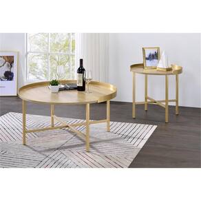 Mesa redonda de madeira Acme Mithea com base de barra transversal em carvalho e ouro