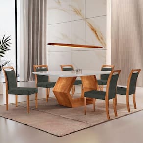 Mesa Ane 180 Tampo Com Vidro Laqueado com 6 Cadeiras Livia