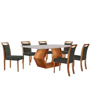 Mesa Ane 180 Tampo Com Vidro Laqueado Com 6 Cadeiras Livia Jade Off White Imbuia Natural