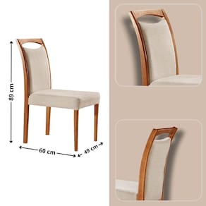 A Cadeira Munique, com seu assento e encosto estofados, oferece conforto excepcional e estilo refinado. Os detalhes curvos em madeira no encosto sao um toque delicado, que harmonizam perfeitamente com o design da mesa.