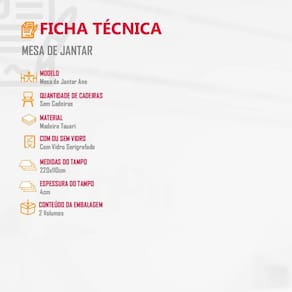 Esse conjunto é composto por: 01 - BASE DA MESA: EM LÂMINA DE MADEIRA CINAMOMO 01 - Tampo: MDF LAMINADO E VIDRO SERIGRAFADO DE 4 MM