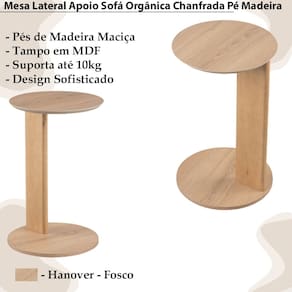 Mesa Lateral Apoio Sofá Orgânica Chanfrada Pé Madeira 28020
