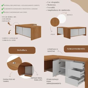 Seu escritório muito mais funcional e elegante com esta bela mesa! Seu design autêntico com recortes inclinados tornam a mesa única e deixam qualquer ambiente mais sofisticado! Com tamanho grande e imponente, este móvel otimiza seu ambiente pois é muito espaçosa e acomoda todos os seus pertences! Tem espaço ideal para CPU, 2 portas e 3 gavetas com corrediças telescópicas de abertura muito suave, além de passa fios no tampo para remanejar seus cabos de maneira inteligente e tornar seu ambiente de trabalho ainda mais organizado! A qualidade é de alto padrão, garantida por estrutura em MDP e peças de Tamburato com 37 mm de espessura, com acabamento BP amadeirado lindo e muito agradável ao toque, para tornar seu momento de trabalho perfeito!
