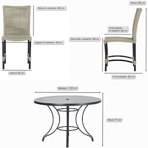 Itens Incluso: Mesa Ascoli 120 Cm com 6 Cadeiras Cannes de Alumínio