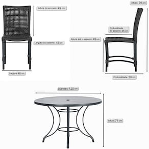 Itens Incluso: Mesa Ascoli 120 Cm com 6 Cadeiras Cannes de Alumínio