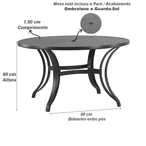 ESPECIFICACOES TECNICAS: Mesa Ascoli: - Altura 80 cm - Diametro: 140 cm - Tampo ripado de aluminio - Pintura eletrostatica inclusa