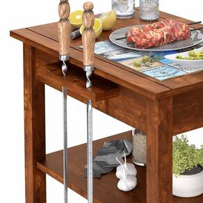 Suporte para Espetos:Inclui um prático suporte para espetos, permitindo organizar e manter os utensílios de churrasco sempre à mão.