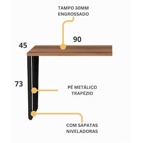 Dimensões: 90 cm (C) x 45 cm (L) x 73 cm (A)