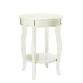Mesa auxiliar redonda Acme Aberta de madera con estante inferior en color blanco antiguo. - Acabado: Blanco antiguo - Con estante - Almacenamiento abierto: Estante inferior - Tapa y faldón redondos de madera - Pata cabriolé de madera - Colores opcionales - Mesa con patas redondas
