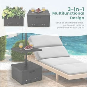 Transforme sua area externa com esta base inovadora 3 em 1! Fabricada em plastico de alta resistencia, ela foi projetada para oferecer muito mais do que estabilidade ao seu ombrelone ou guarda-sol. Pode ser utilizada como base, como uma pratica mesa de apoio para bebidas e petiscos ou ate mesmo como vaso decorativo para plantas, trazendo charme ao ambiente. Com capacidade para ate 80kg quando preenchida com areia, garante seguranca mesmo em dias de vento, mantendo o ombrelone firme no lugar. Suas dimensoes de 53x53x30cm se adaptam perfeitamente a varandas, quintais, areas gourmet ou a beira da piscina. O design moderno e multifuncional agrega estilo e praticidade, tornando o espaco mais organizado e agradavel para receber amigos e familiares. Se voce busca um produto resistente, bonito e que economiza espaco, esta e a escolha ideal. Marca: Não Informado