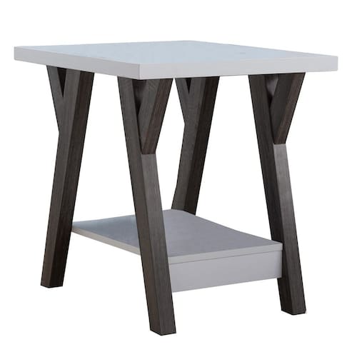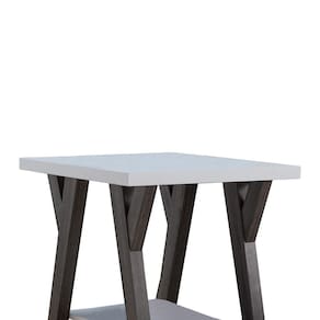 Mesa final de madeira bicolor Benzara BM179633, branca e cinza envelhecido