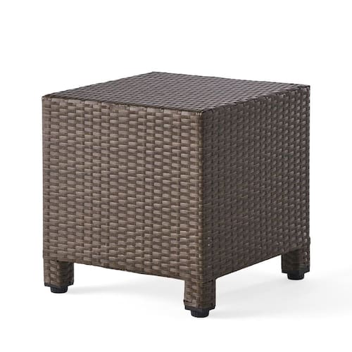 Mesa Benjara Perie Accent, tampo quadrado moderno de 18 polegadas, tecido de rattan marrom escuro - mesa de um acento. Estrutura de ferro resistente para longevidade.