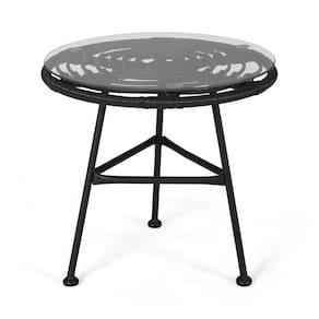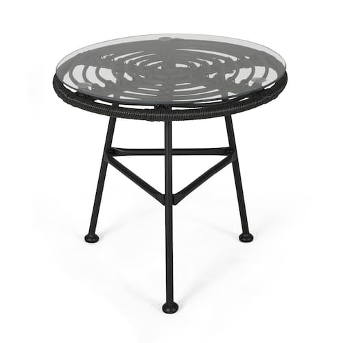 Mesa lateral externa Benjara Tee, tecido de vime de 20 polegadas com tampo de vidro, cinza