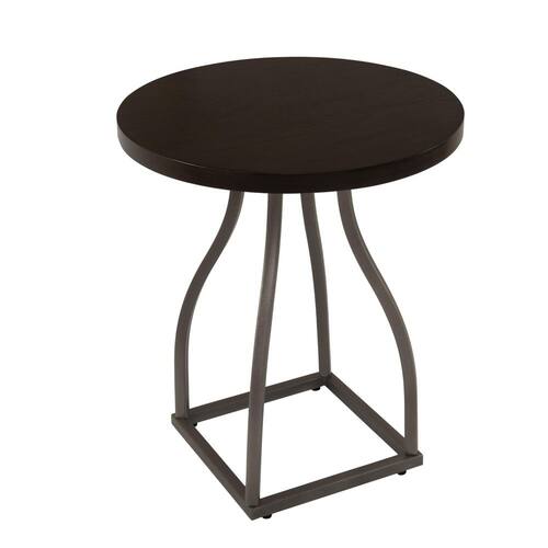 Mesa Benjara Tior Accent, tampo redondo de madeira de 20 polegadas, base de metal cinza, marrom e bronze