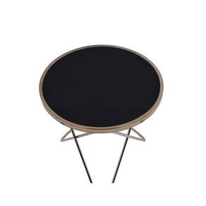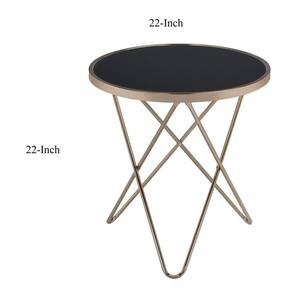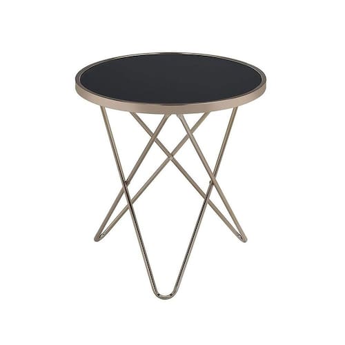 Atualize sua sala com uma peça de arte funcional. A mesa final utiliza uma base de inspiração do meio do século final em champanhe (ouro) e suporta uma moldura preta topo de vidro. O acabamento e vidro preto para uma aparência sofisticada. Inclui: uma mesa redonda final
