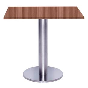 Mesa Beta Big Inox 75 Cm (alt) Disco Redondo Tampo Mdp Quadrado 60 Cm (larg) X 2,50 Cm (alt) Walnut