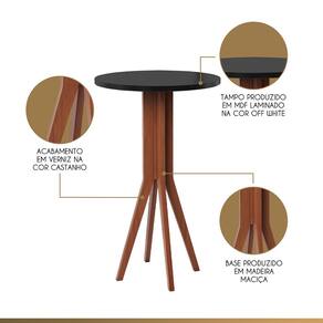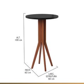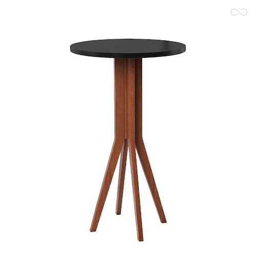 Mesa Bistrô Alta Redonda Madri em Madeira Maciça Castanho Tampo Preto CCS