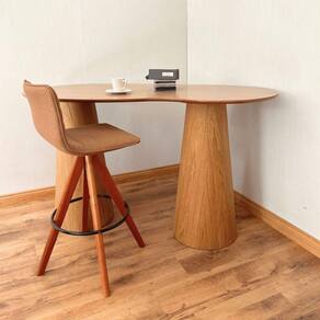 Dupla base cone redonda fabricada em madeira e MDF fiberboard e acabamento laminada em madeira natural, contra-tampo em MDF melamina e Tampo MDF em Melamina.