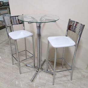 Mesa Bistrô/Bar Cromada Tpo Vidro. C/ Regul. C/ Duas BQ-1017
